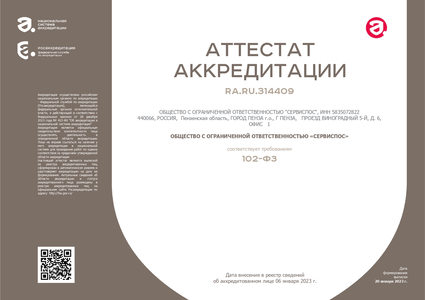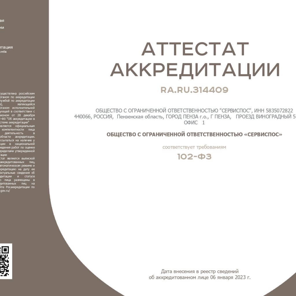 Аттестат аккредитации RA.RU.314409 от 06.01.2023